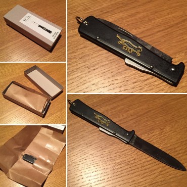 EDC Every Day Carry. Here’s my new pocket knife, a strong carbon steel bladed thin profiled locking knife. Made in Solingen Germany. Known as the Mercator Black Cat, a design unchanged for over a century, it arrived wrapped up in waxed brown paper esconsed in a sturdy cardboard box. Nice sharp tool.