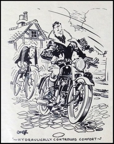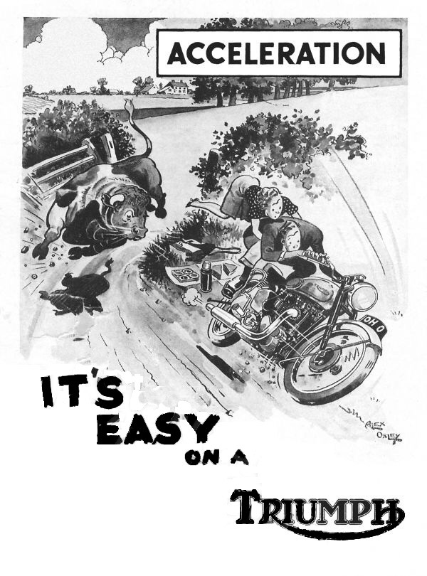 This couples rural picnic has been rudely interrupted by the snorting rampage of a bullish beast. After tickling the carbs and kicking the engine over you’d certainly need a good spanking of acceleration to make a hasty retreat. “Hang on pet, we’ve got a hedgerow to jump yet!”