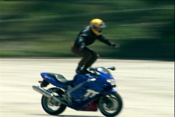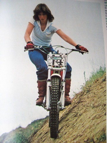 Balance- trials champion, stunt rider, motorcycle hall of fame inductee. Debbie Evans rode as she learned to walk has impeccable two-wheel control. As well as the fine technical abilities of a trials competitor she could handle fast bikes as a Hollywood stuntwoman making the movie Moto heroines appear superhuman.