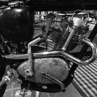 Taking their name after the cult classic Roger Corman 1966 B-Movie starring Peter Fonda this rocker group use the cafe racer as the equivalent to US Hells Angels choppers. This photo line-up has a bevy of BSA’s, Nortons and Triumphs. Clip-ons, quiffs, leathers and attitude. The middle Moto with ape hangers is …?