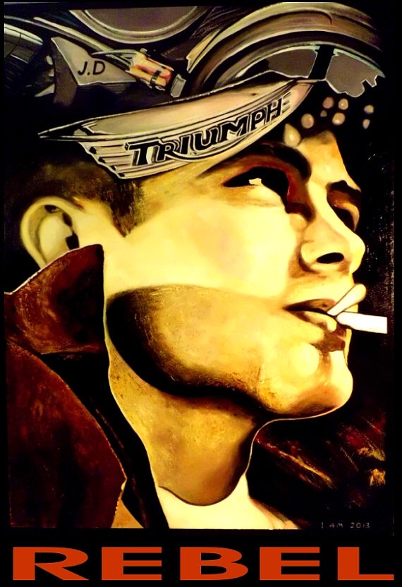 Some artistic representation of rebel Jimmy Dean looking ready to Cause trouble.