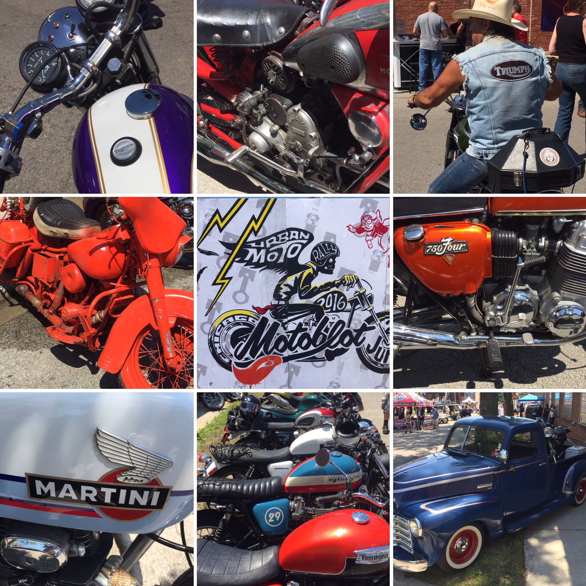 Motoblot – a hot, hot, hot day in the City. Winding through slow weekend traffic for an hour to attend the rockers biker gathering. Music, pinup gals, local beer, hot rods, and bikes; hunnerts of bikes. No two alike, each individual. Love it! Rode home along Lake Street (under the long straight el tracks, a la French Connection) along Wacker Drive, padded along Michigan Avenue then a zoom north up Lake Shore Drive.