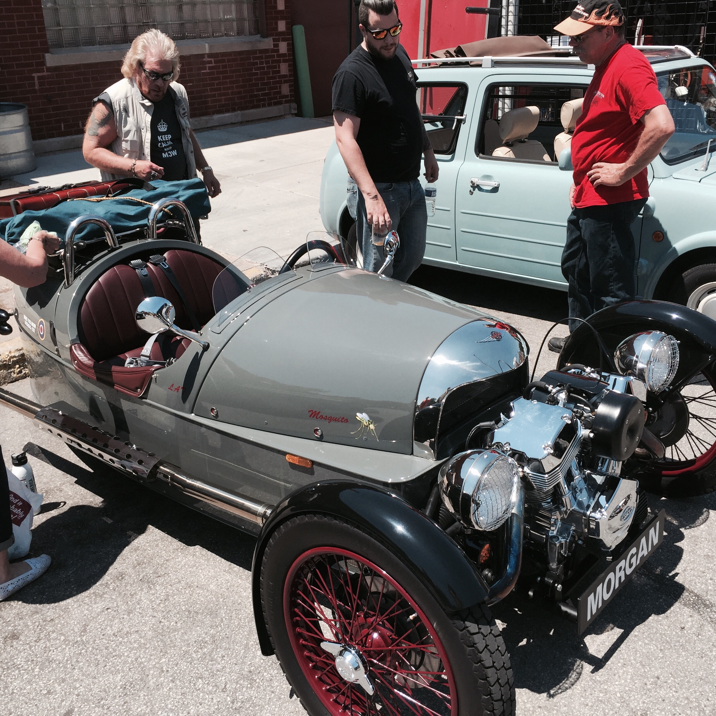 Fun on Three Wheels – as I was wandering the motorcycle show this vehicle trundled up. A couple with big grins where sat as pilot and navigator. Gleaming v-twin engine afront, grey fuselage, and amaranth wire wheels with knock-off hubs. As British as tea & scones with a whiff of a WW1 ace heading into the French skies to see off Hun. “Smoke me a kipper I’ll be back for breakfast!”