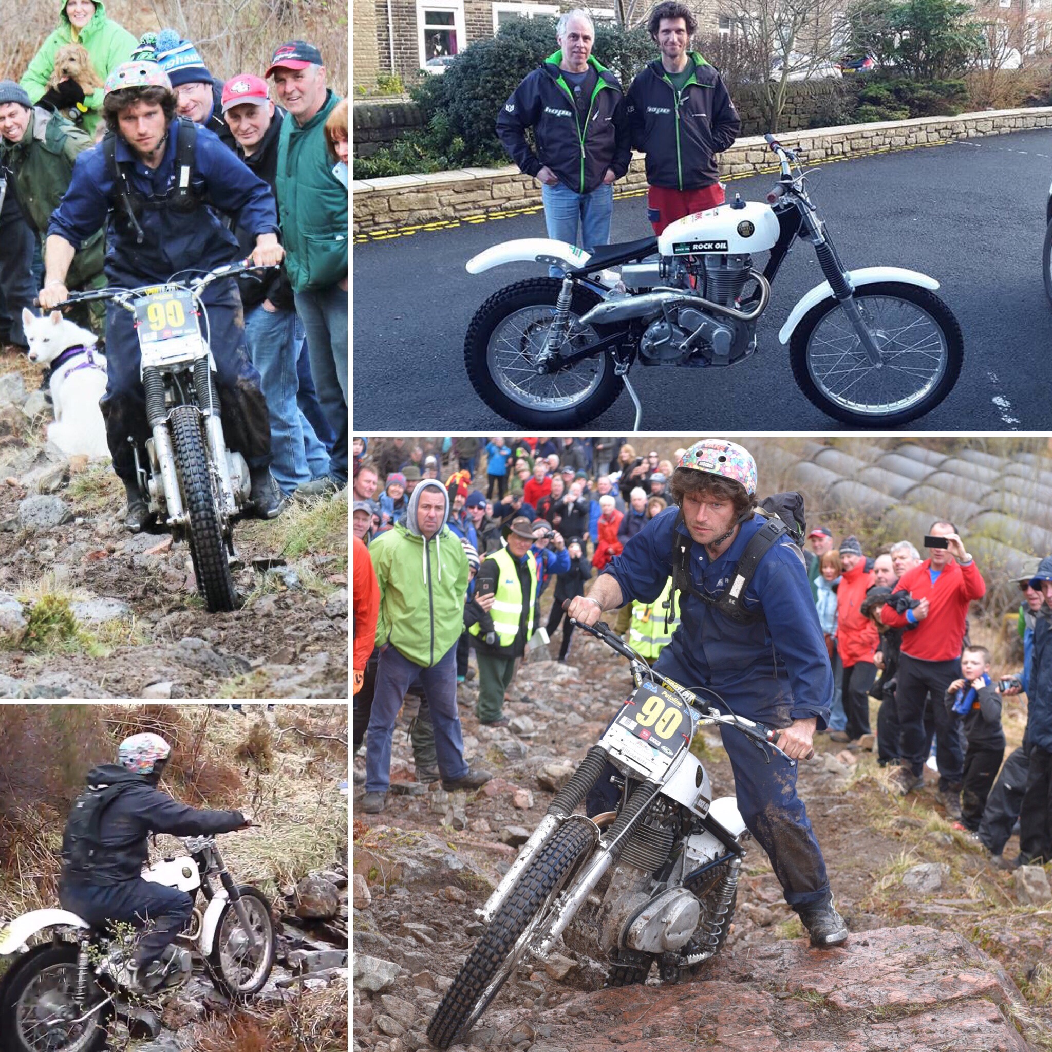 SSDT – our bloke Guy Martin took part in a pre65 course at the Scottish Six Day Trials on a typically damp April weekend earlier this year. He’s dabbing along on a nice Ariel 350 single. Boiler suit, mountain bike helmet and Dainese race boots complete the appearance.