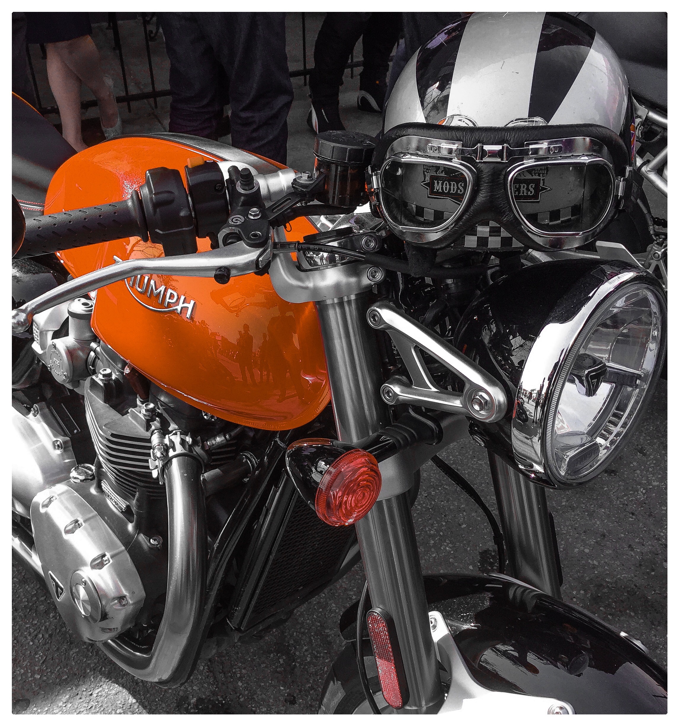 Thruxton – of all the delicious motorcycles gathered together on Sunday the tastiest was the be Thruxton. It just looks superb and talking to some owners rides superb too. Someone had a British Racing Green color scheme that was sublime… But I do like the rocket-red one.