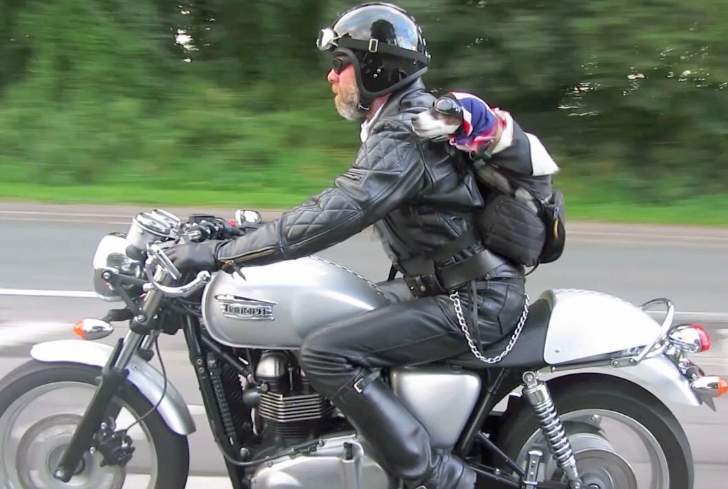 Dog Rider – this is Douglas and his owner Andrew Ditton. They live the simple life in an Airstream trailer. They get around on a silver Triumph Bonneville. Not bad.