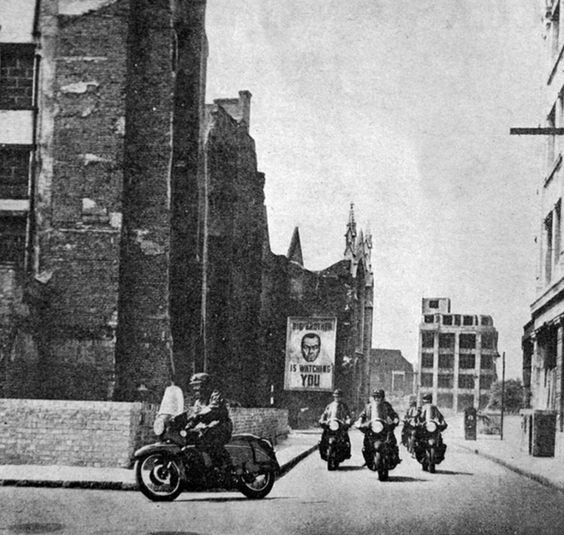 Thought Police – a 1956 film adaptation of George Orwells dystopian novel published just eight years prior had the ThinkPol riding the then futuristic looking Vincent Black Knight.