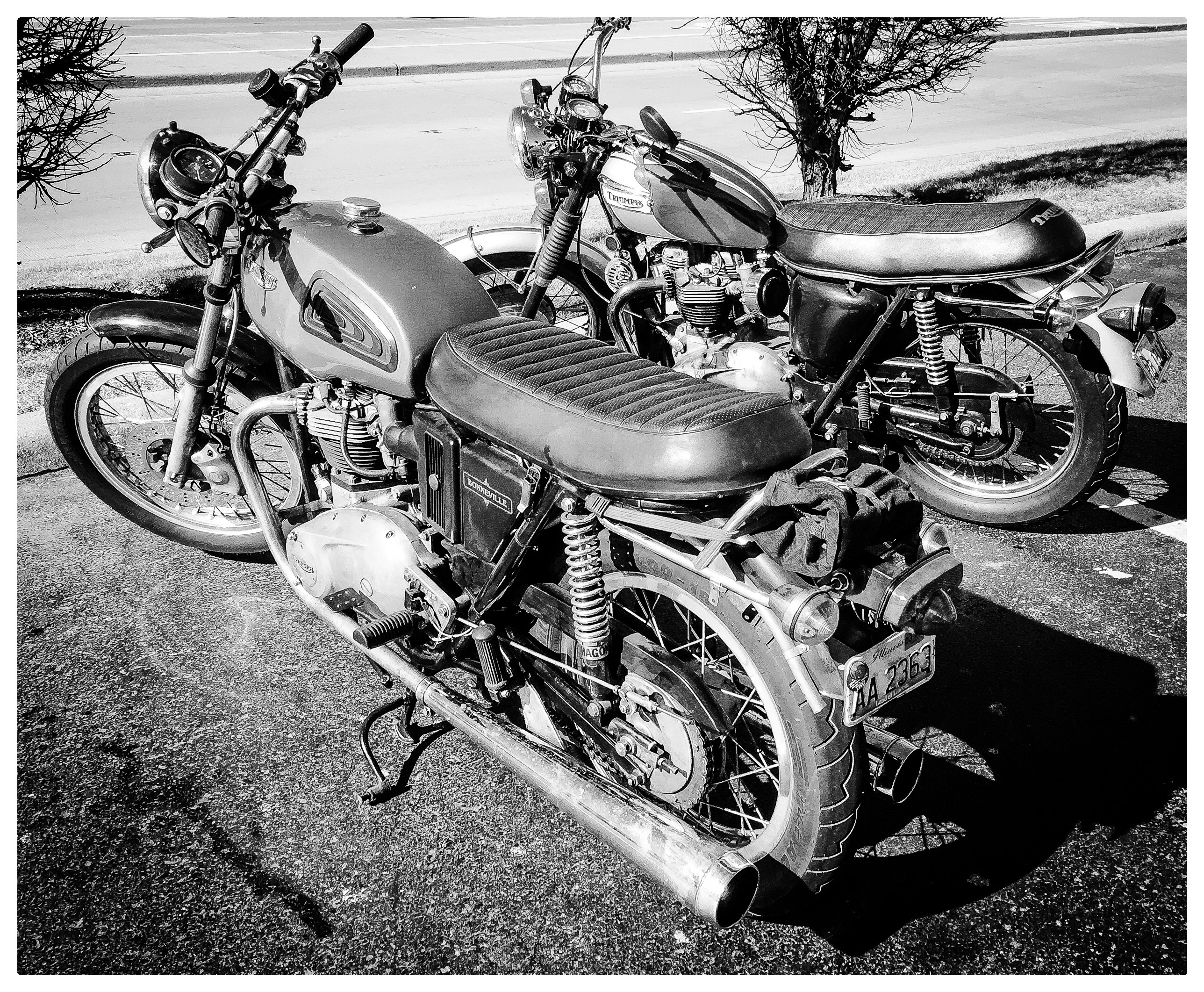 Rather terrific weather today. Though a chill in the air under motion, the sun was warm with a crisp light and the roads clear. Taking back road that offered more than a few stretches, to let the newly geared engine stretch its legs, I can confidently announce that there’s a hefty bit more grunt in the parallel twin. She lowped along comfortable at 60 with more to spare.