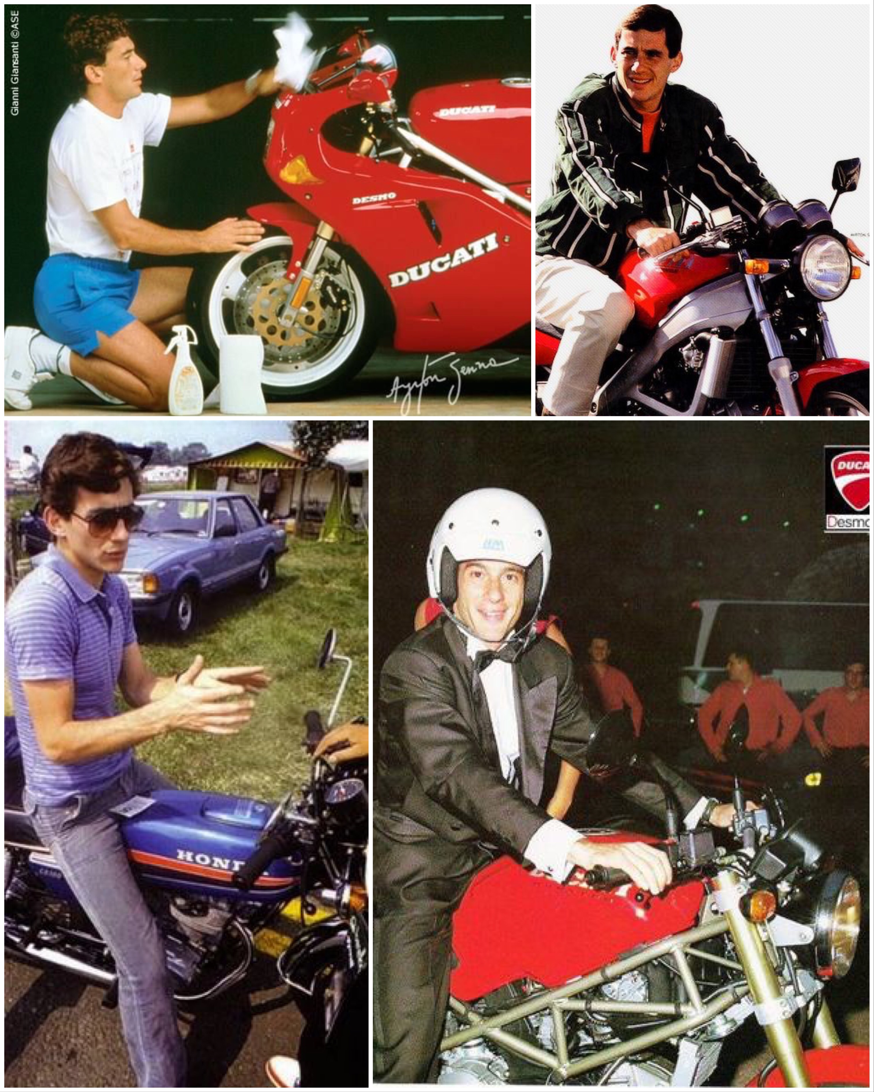 Senna – The Brazilian racing great would have been 57 today had he not been taken from us on that fateful MayDay at San Marino in Italy in 1994. As well as racing at the top of the game for teams such as Lotus and MacLaren he enjoyed the two wheeler. With Honda supplying engines for the mid-eighties Lotus he has a pit bike supply; later on Ducati took him under their promotion wing with their Monster line-up and the super sport 888, 900 and the classic post posthumously introduced Senna 916 in grey rather than the traditional red or yellow.