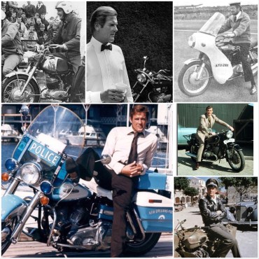 Bond, James Bond. Sir Roger Moore (1927-2017) . Known around the globe as Ian Fleming’s spy he played that role for 7 films. As well as the cars and ladies he was also seen occasionally on two wheels. Other dashing roles he portrayed nincluded Ivanhoe, Beau Maverick, Simon Templar, and one of the Persuaders (the other being Tony Curtis).