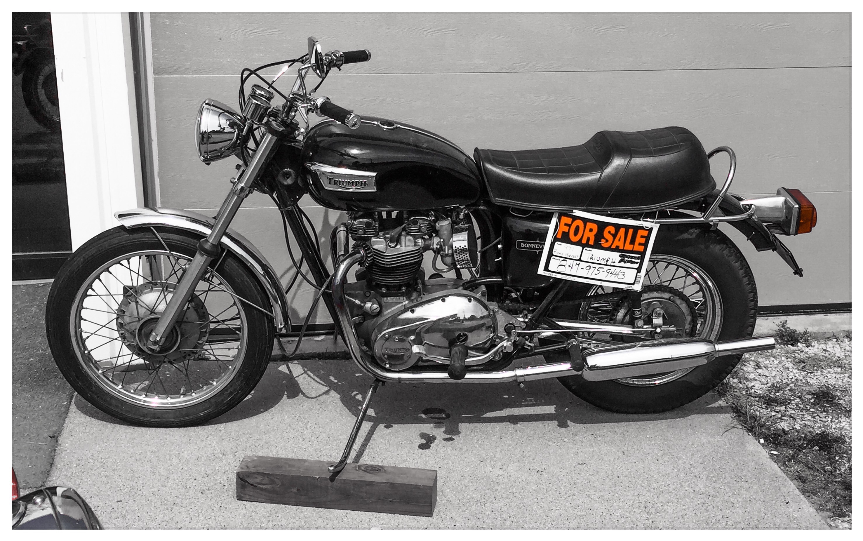 The Classifieds – a grand day with perfect summer weather and quiet roads. Getting out at 7 helped too before the heat and traffic built up! New carbs have given the Bonnie a new lease of life. Spied this ’71 example up near Antioch; in nice shape and waiting for a rider.