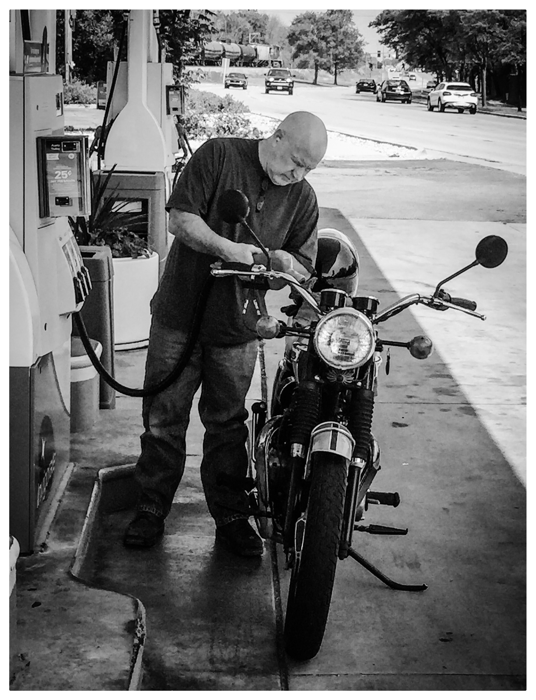 Gas Up – quick fueling stop mid-ride. Filling with 93 octane. The old valve seats would prefer leaded to protect them from regression but lower compression and trying to avoid ethanol additives help too.