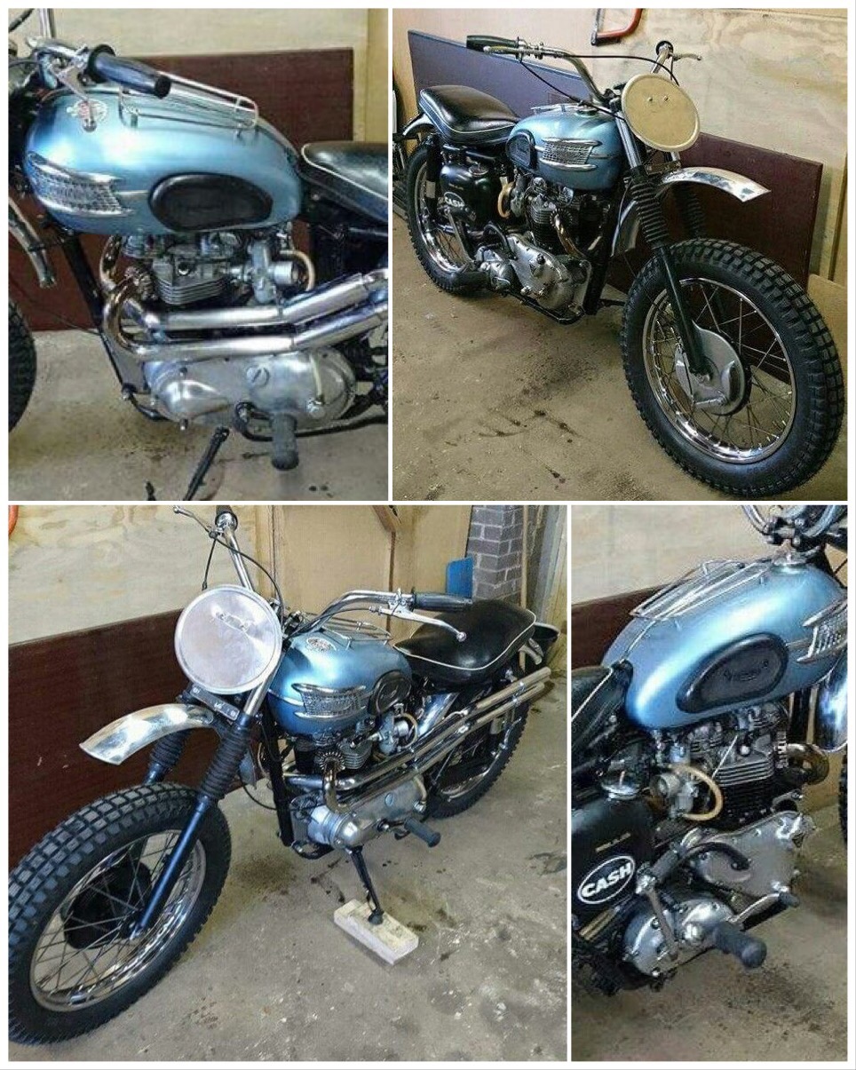 Polychromatic Blue – here’s an off-road sorted ’58 pre-unit Triumph currently for sale on eBay in the U.K. It would make a good tool to haul over the desert like Steve MCQueen was doing in yesterday’s blog. I’m filing this one for a future project…