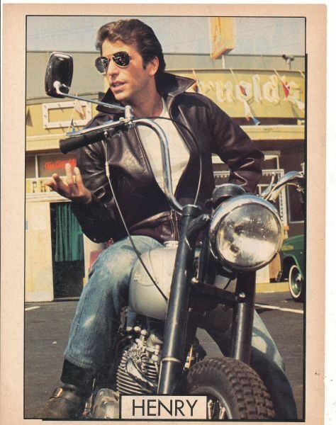 Heeey! When you want to play it cool nobody does it better than The Fonz (Arthur Herbert Fonzarelli) played by Henry Winkler. His bobbed Triumph TR5 became as iconic as his hair-do and thumbs.