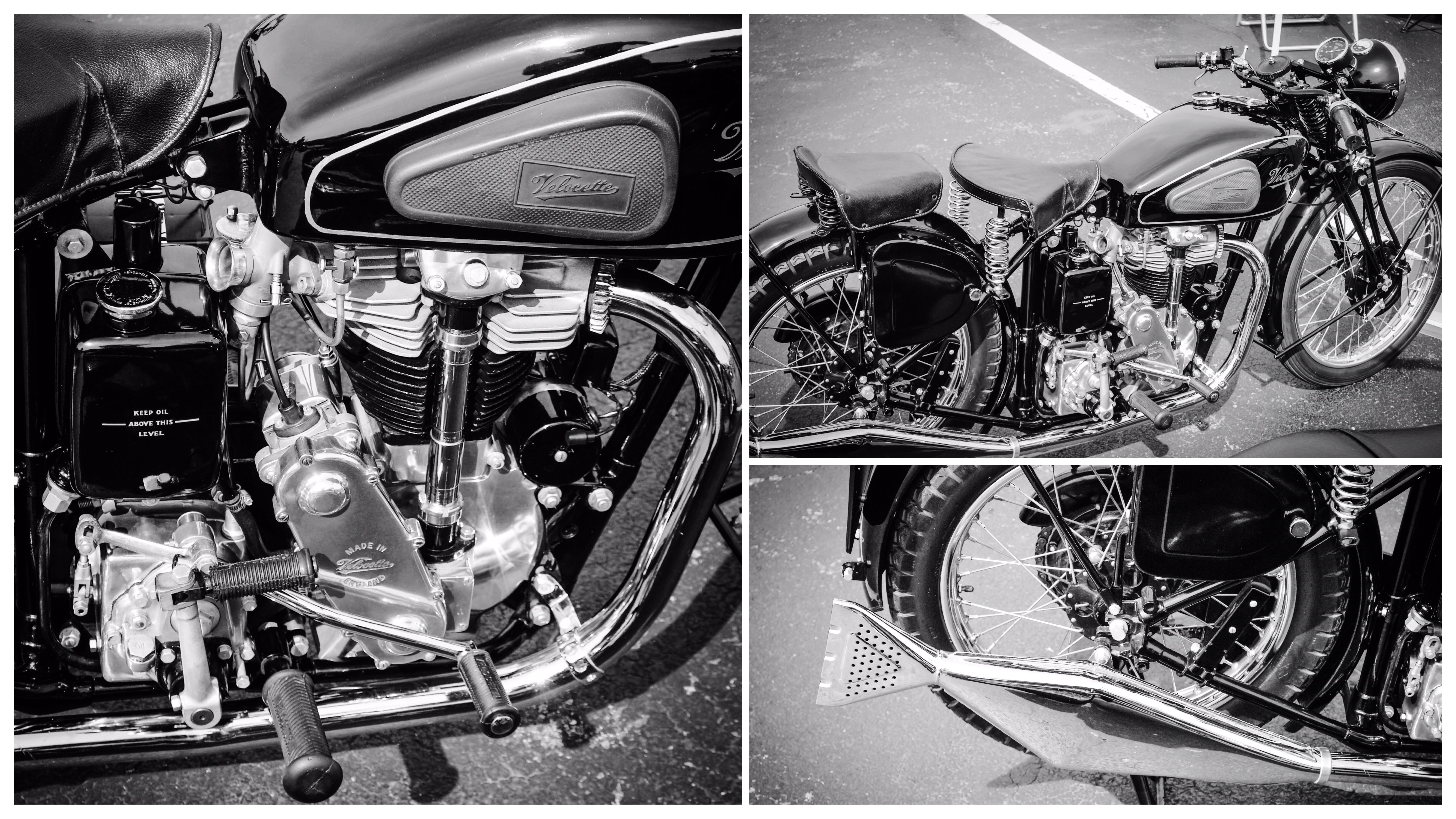 B&W – beautiful ’38 Velocette KSS. This single cylinder 350cc is vintage platinum best. Kam (Camshaft) Super Sport these saw racing success in the Twenties. It’s the same model Charles & Ray Eames sat on in this wonderful portrait.