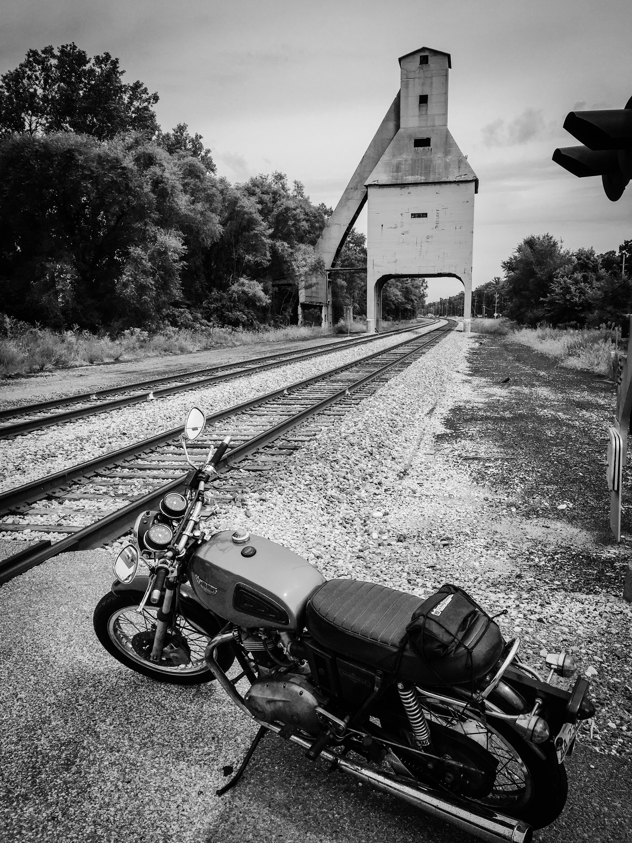 Coaling Tower – the ride today took us along Route 12 into Michigan. It runs parallel to various rail lines including the South Shore. This structure stands just outside of Michigan City and was used to refuel steam locomotives.
