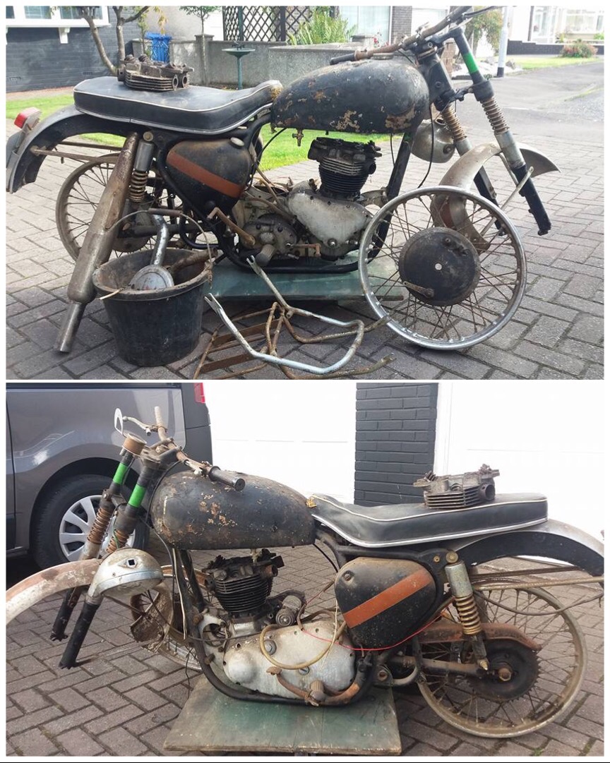 The Projection – lost under a tarpaulin for several decades here’s a suitable time and money sink. Complete of sorts and a bit of a mongrel with a Beeza pre-unit chassis and similar vintage Triumph engine. It needs elbow grease, vision and moderately deep pockets.