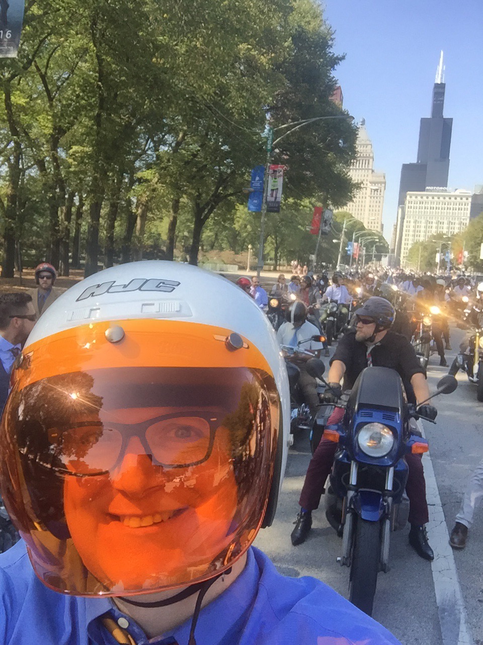 Distinguished Gentlemen’s Ride – a huge turnout for the mass ride in Chicago today. Everyone dressed up to the nines and a super route was taken directly through downtown and along Lake Shore Drive. 90 degree weather was eased by a pleasant breeze off the azure waters of Michigan. There was about 700 riders all told.
