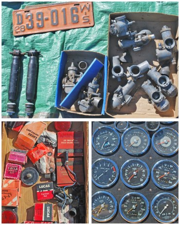Swap Shop – there were a few folding tables and tarpaulin with various items for any restorer looking for that all essential original part. Amal carburetors by the shoeboxful, Smith’s instruments displayed three by three, and a drawer of Lucas fun ‘n’ games for the mystical art of classic bike electrics.
