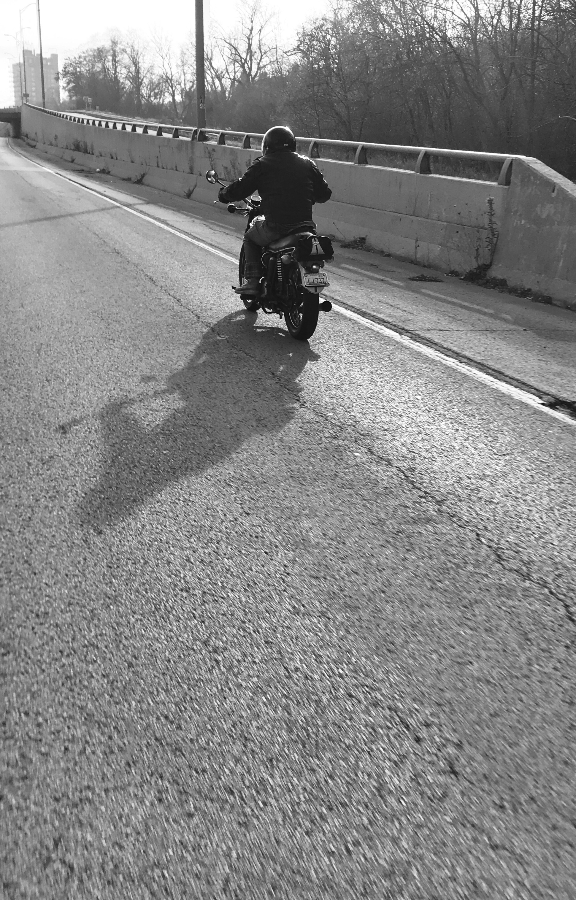 Deepening Shadows- one thing about riding at this time of year is the light is low and the world around you has a sharp contrast between light and dark. Makes for great black & white photography. The photo was taken along The Melvin Amstutz Expressway IL 137 in Waukegan.