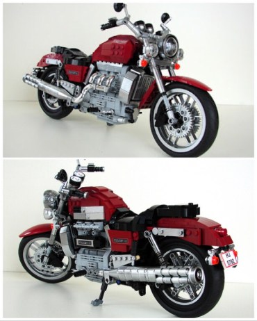 LEGO – brick by brick here’s an accurate model Triumph Rocket Three. Mostly recognizable pieces put together with typical assembly methods. It would make a cool kit.
