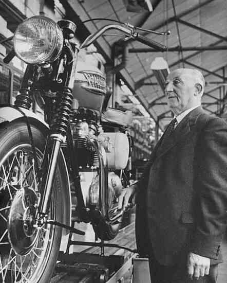 QA/QC – Ex-racer Sidney Tubb gives a “hot-off-the-presses” T120 Bonneville’s a once over as they roll of the factory line. He was ‘shop foreman in the early sixties when this photo was taken.