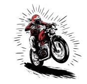 Woodcut Wheelie! Stunning black and red print-like graphic of some riding dude hauling their Triumph onto its back wheel.