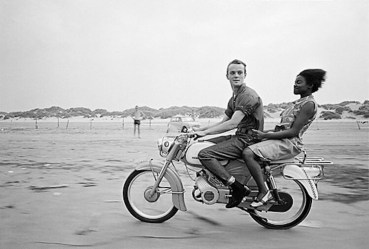 Happiness is… riding along a stretch of beach with your gal sitting pillion without a care in the world. A sleek 1965 Zundapp 50cc motor-scooter carries this carefree couple. Love this photo.