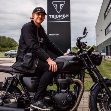 Magicians Special – actor Rupert Grint beams whilst perched on a black Bonnie. Not quite a Nimbus 3000 but I’m sure you’d give the Golden Snitch a run for its money. Ron Weasley usually ended up with hand-me-downs but this time he’s plumped the wizards prize.