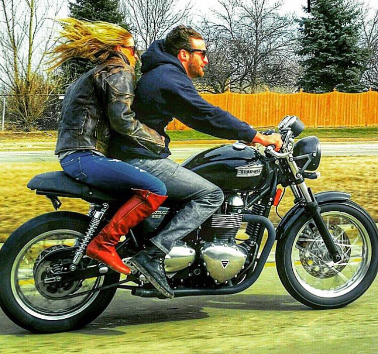 Red Boots – let’s finish off this week with more pillion shenanigans. Hair ablaze and blurred spinning wheels.