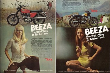 Boldest – Friday brings a twofer where the bikes play second fiddle to the gals who pose coyly at prospective buyers of these single cylinder cycles. Starfire was the quarter liter starter machine, the Victor was more off road styling fit for gravel trails. Soft focus anyone?