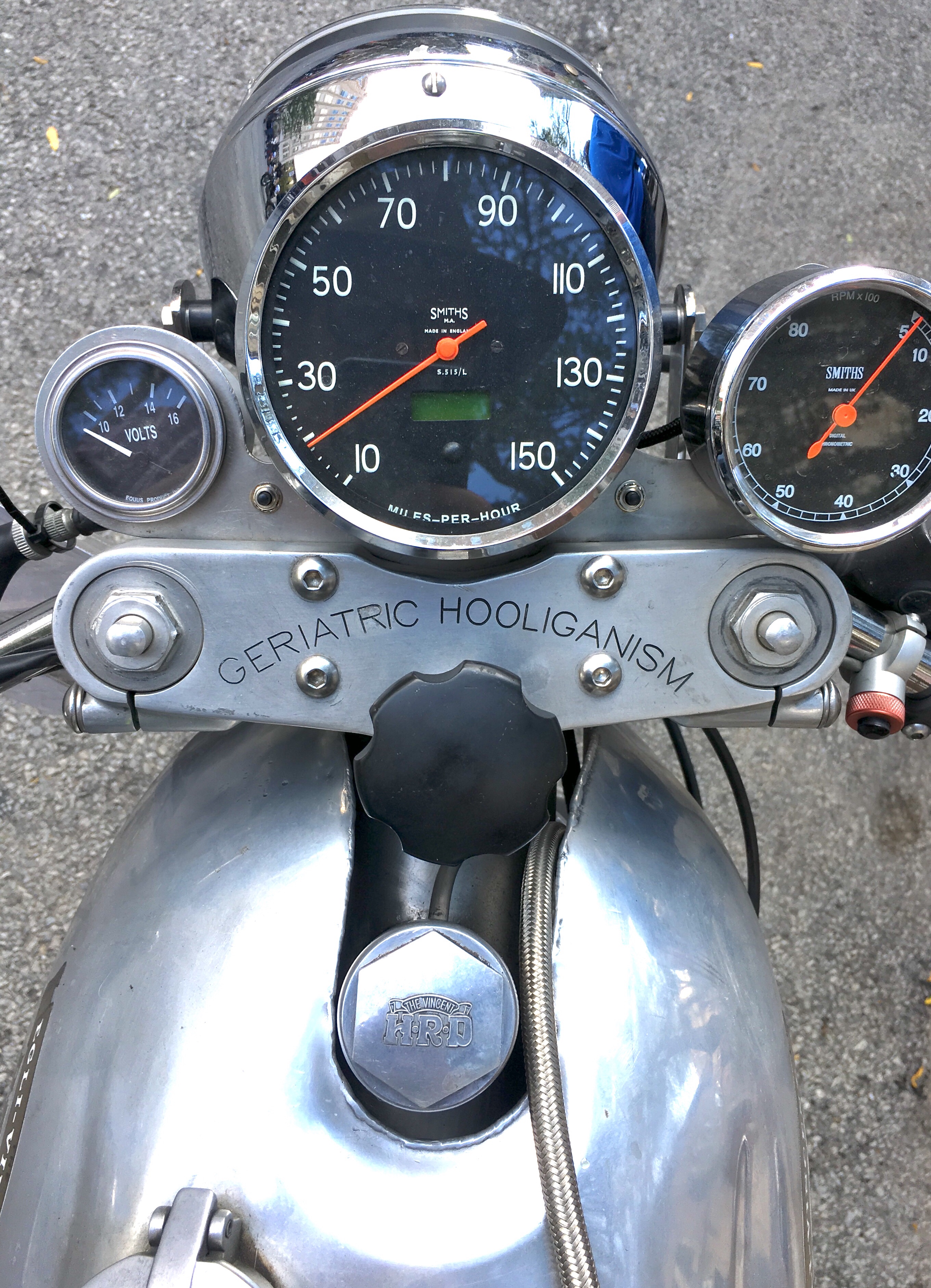 OAP – better than a walking frame. One agéd owner had his Egli-Vincent fettled for taking their machine to the ton-plus speeds… which it’s more than capable of.