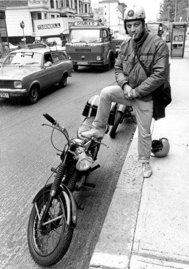 Courier- fag stop for BSA Bantam owner along some street in The Big Smoke. A motorcycle is the best way to get around London. It lets you nip through the traffic making sure you get to your destination with a smile and on time.