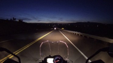 Indian Summer- the weather today topped out at a balmy 85 degrees so I took the feline flyer out for an evening spin. The cat eyes lit up the road well as the rosy glow of a setting sun illuminated the West.