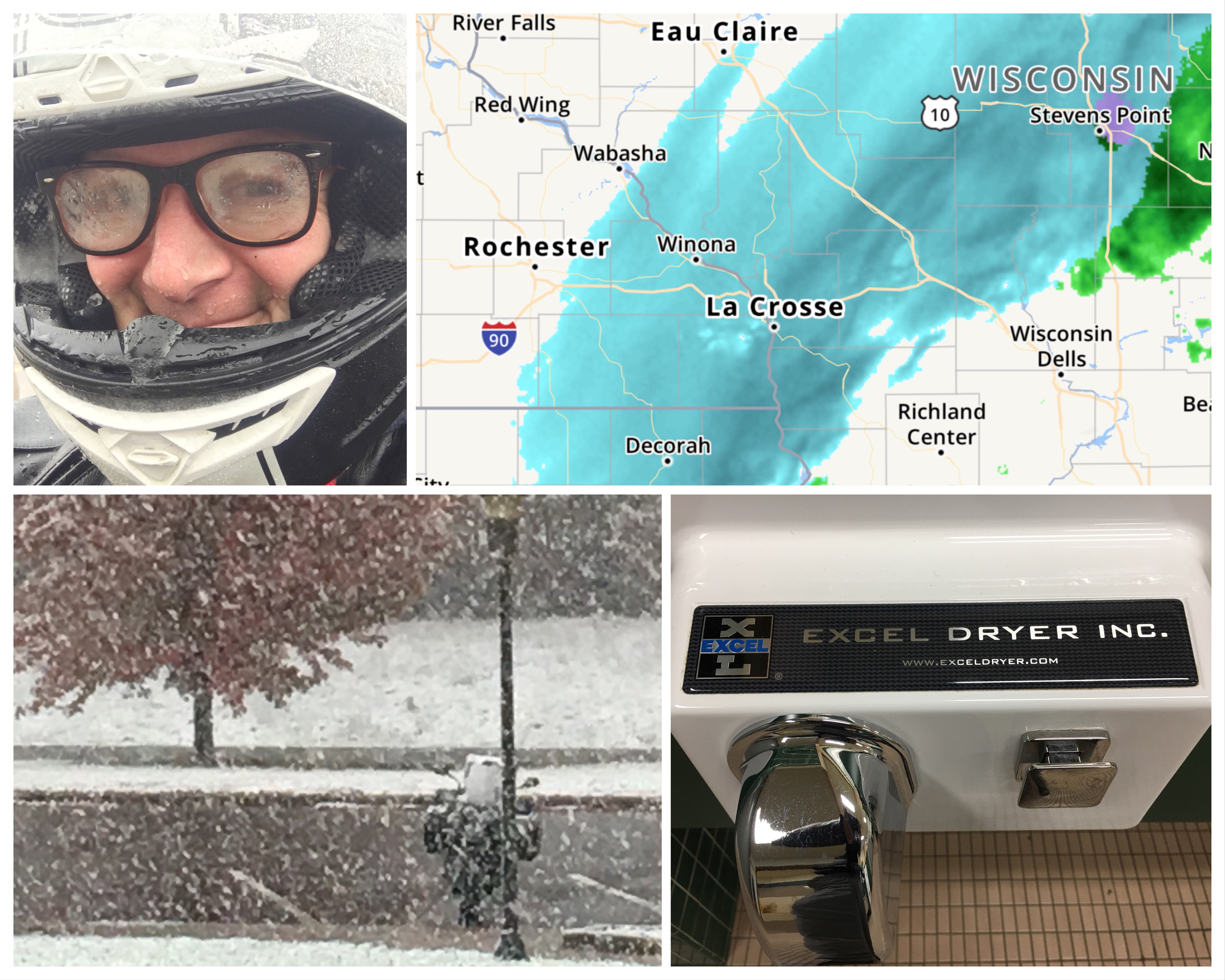 Winter is Here – there was hints of ominous weather in the forecast; but not a wintery outlook! A couple of hundred miles on the highway back to Chicago the white stuff got the better of me. And rightly so! A good hand dryer at a rest stop to dry the gloves; full set of sturdy waterproofs from a hunting shop; to keep cozy; but the driving snow gives poor visibility. So I find a comfy “mom & pop” motel in Millston just off I-94. “The rooms open, key’s inside, just make yourself at home hon” said the friendly voice of owner Mary on the loaned ‘phone at a local gas station. Apparently the best cinnamon buns in Wisconsin are made for breakfast.