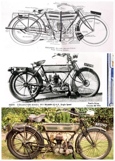 Three and a Half – further to yesterday’s posting with the LE to JO’G race here is some illustration, literature imagery and motorcycle photography of the Triumph used in the run. It’s now considered an antique at over a Century old but some collectors still ride them with passion.