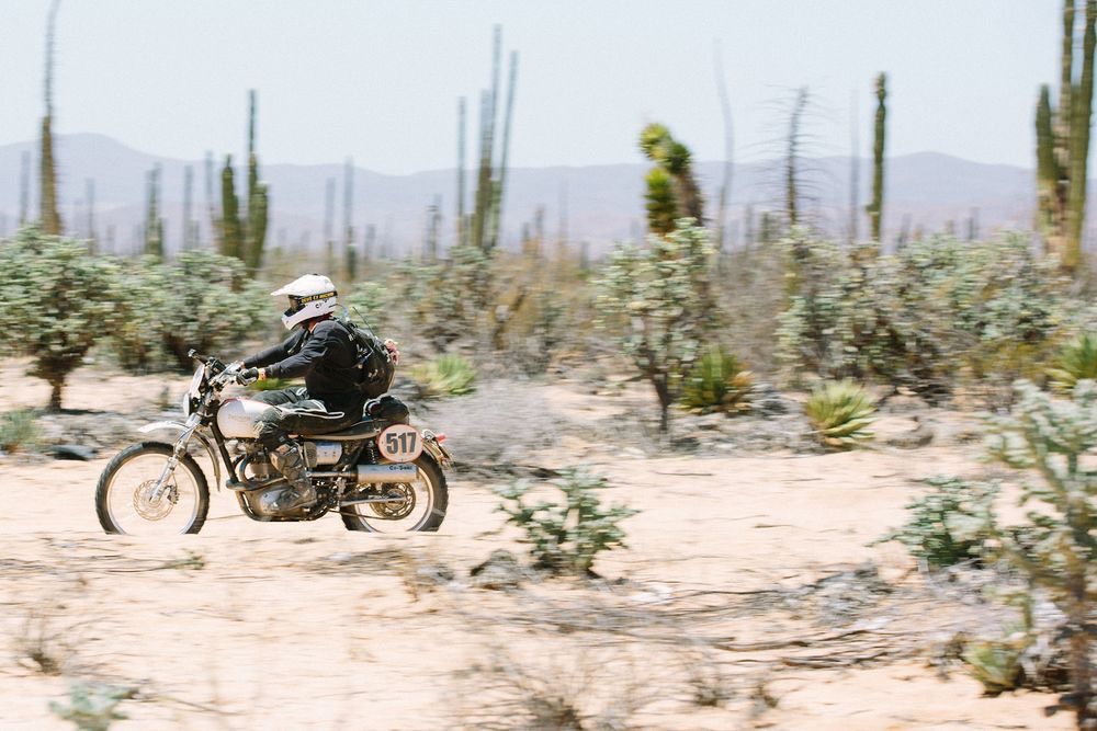 Cactus Cavorting- winter has descended again in the Midwest so some imagery of warmer 2-wheeled adventure can feed the riders soul. Here is Julian Heppekausen on his ’66 T120, called Terry, belting down the Baja Peninsula.