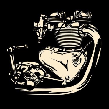 Pre Unit | Black & White graphic depicting a late 50’s twin cylinder Triumph engine. Nice clean artwork.