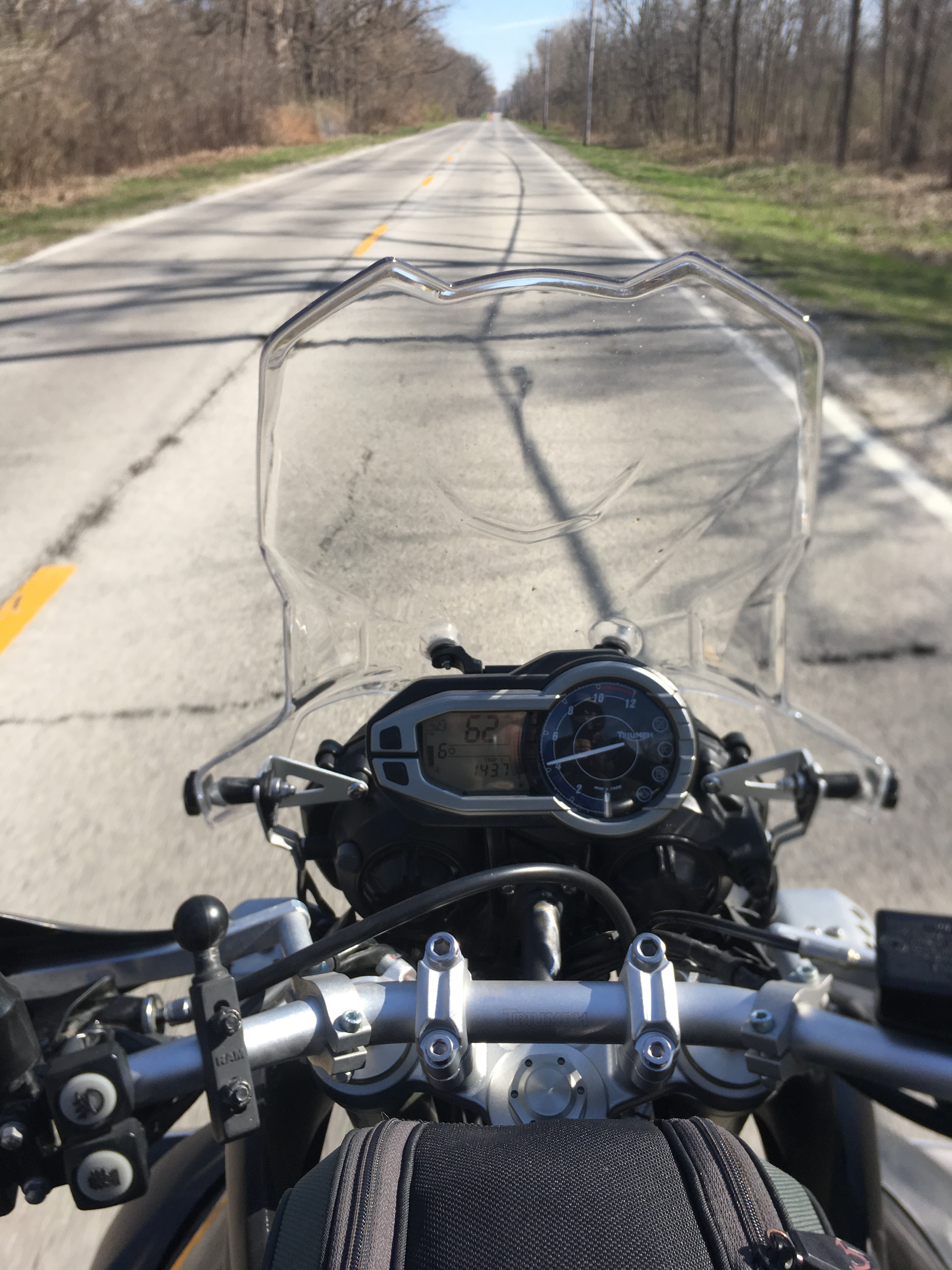 Vanishing Point | One more photo from the weekend. Clear roads and budding trees under a hazy spring sky. A pleasant perch indeed when haring along.