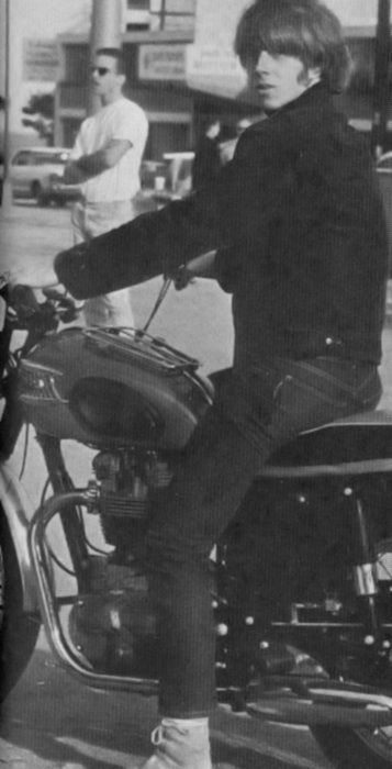 Is it a Byrd? Bassist Chris Hillman looking hip on a Triumph back in the sixties. I was listening to McGuinn, Crosby, Clarke, Clark and Hillman with their Easy Rider soundtrack earlier when preparing the evening meal.