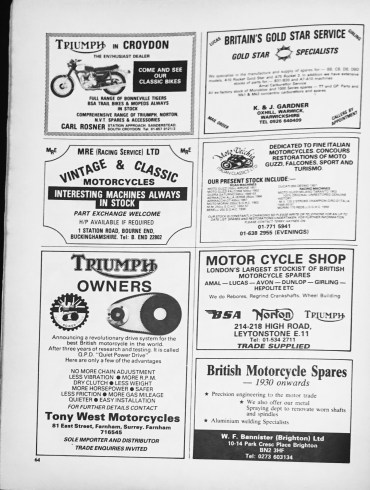 39 Years Ago | Recently my family acquired a stack of old Classic Bike magazines from the Eighties. A few made it back to the States from our recent trip to Scotland. Here’s a typical classified back page where information on parts, repair, sales were a key part of vintage motorcycle restoration and maintenance. Remember this is a generation before the all seeing and doing InterWeb. The monthly magazines were essential reading for the enthusiast.