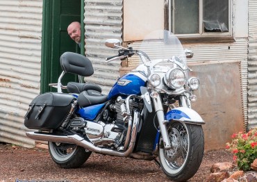 Space Man | peering over the ‘bars like some Ray Bradbury character a modern desert sled pilot scans a desolate horizon and aims the Triumph Scrambler towards a distant point in the future.