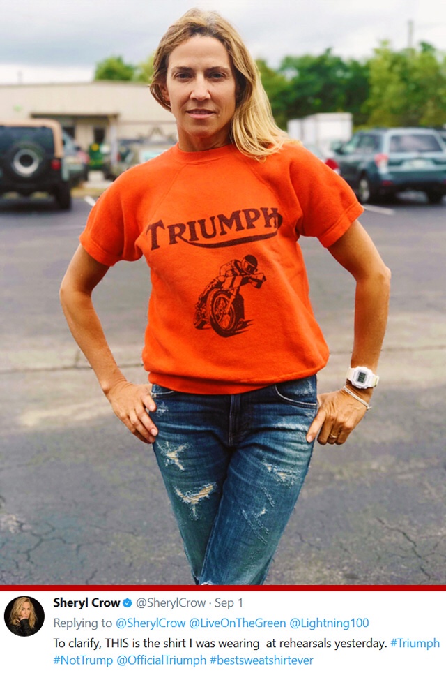 Like Steve McQueen | Singer songwriter Sheryl Crow sporting a cool tee which she is proud to wear.