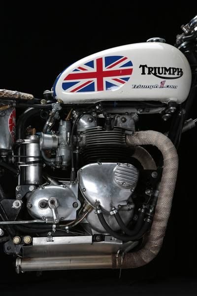 Black Backdrop | Heavily Modded late sixties Triumph Bonneville fettled for the drag strip. Nice Union Flag motif on the tank knee scoops.