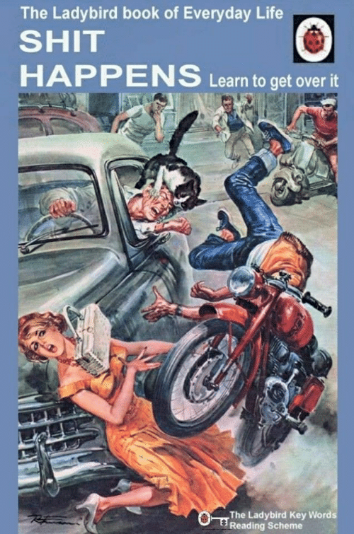 Mayhem | This is what can happen if you drive around with a cat on your head. It may startle, dug it’s claws into your scalp, causing you to careen across the road and the ongoing calamity spreads to all other roadway and path users. Remember: don’t drive around with a cat on your head, no matter how cool you might think it seems!