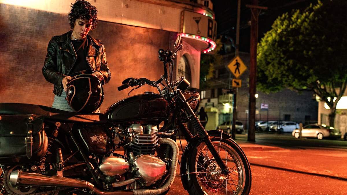 Vida | Actress Roberta Colindrez as Nico tears it up around East LA on this black Bonnie in the latest TV offering on Starz. Nicely composed image.