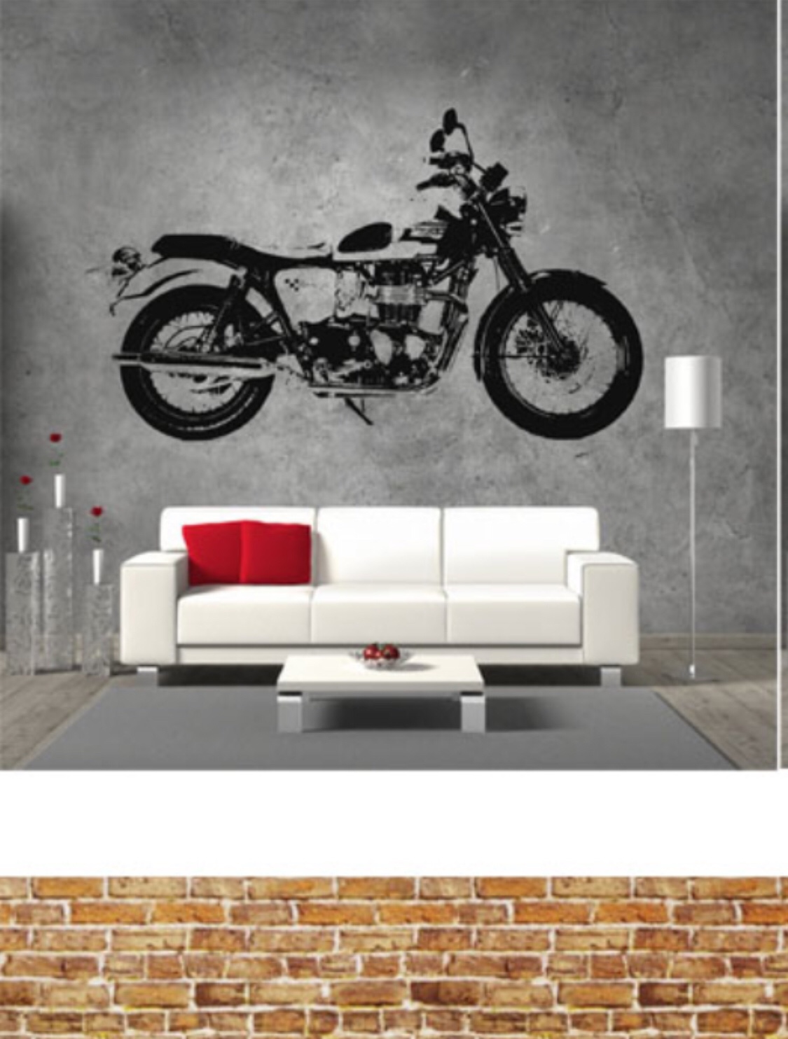 Wall Art | this would make a nice graphic for a cool warehouse apartment wall. High ceilings and brickwork with concrete floors. Indeed you could probably roll the Bonnie into the flat up on the freight elevator..