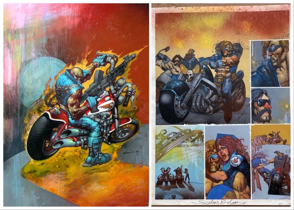 In the late eighties comics evolved from pen and ink drawing to full blown painted illustration blowing the mind of impressionable readers. One of the greats at this effort was British artist Simon Bisley who transformed: the ABC Warriors; Slaine with his Hornéd God series; Dredd & Batman graphic novel; Lobo; and this one from 1992’s Dredd Megazine. a combination of fantasy artist Frank Frazetta; secessionists Gustav Klimt and Egon Schiele; and Marvel Comic artist Bill Sienkiewicz.