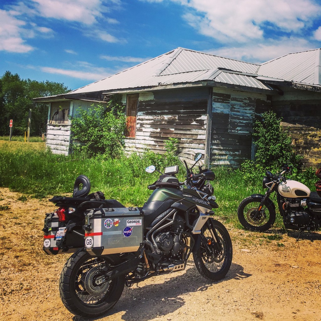 – one of our stops for a leg stretch was at this abandoned crossroads building. You can imagine hoarded of Harley Davidson bickered swarming around at this corner on a Sunday morning before roaring around the backroads then heading back to Milwaukee after a spin around the Moraine’s.