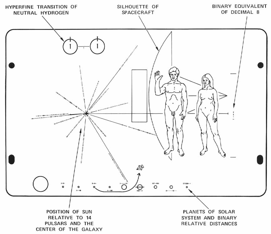 – on this day in 1979 a NASA probe became the first to encounter Saturn and its impressive rings. A gold anodized aluminum plaque designed by Carl Sagan, was attached to the robots body in case in some distant future should it be intercepted by some alien intelligence its graphics may explain its origins. We’ll be long gone by then… but at least in some far flung corner a little hint of our existence will be drifting about.